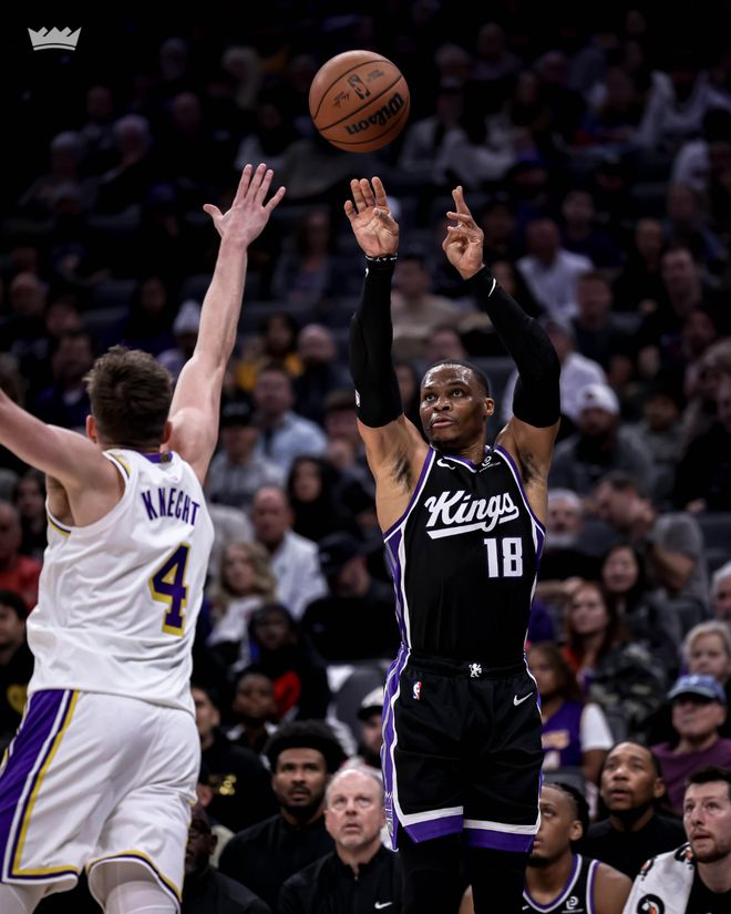 湖人队的里夫斯上半场得到21分、4个篮板和5次助攻,艾顿得到13分和4个篮板,八村塁得到10分;国王队的德罗赞得到17分和4个篮板,拉文得到13分,威少得到11分和5个篮板。