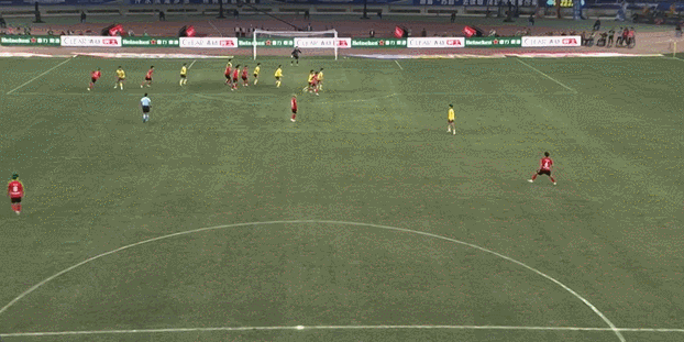 第26分钟,南通队再度制造威胁,一次任意球进攻开到了泰州队禁区内,李贤成近距离打门被门将挡出。