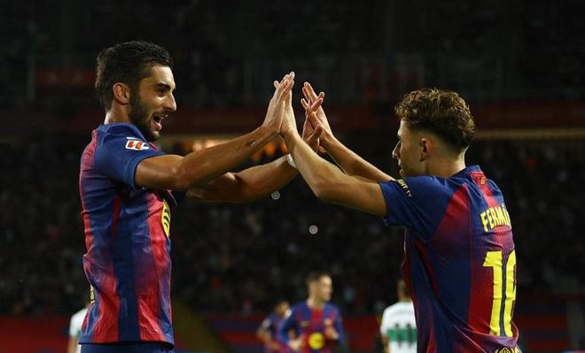 仅仅过了3分钟,埃尔切后防失误送大礼,停球失误直接让费尔明抢断后,顺势杀入禁区,随后无私横传门前,费兰托雷斯拍马赶到,轻松推射建功,帮助巴塞罗那将领先的优势扩大到了2球,半场结束之前,埃尔切通过反击,由拉法米尔扳回一球,将比分追到了1-2。