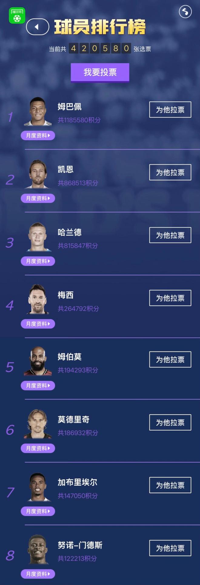 2025年10月MVP得票榜