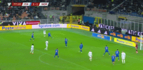 尽管领先优势较大,挪威没有全力防守,依然派出瑟尔洛特、哈兰德的双中锋组合,但开场之后防线持续受到意大利进攻的冲击。