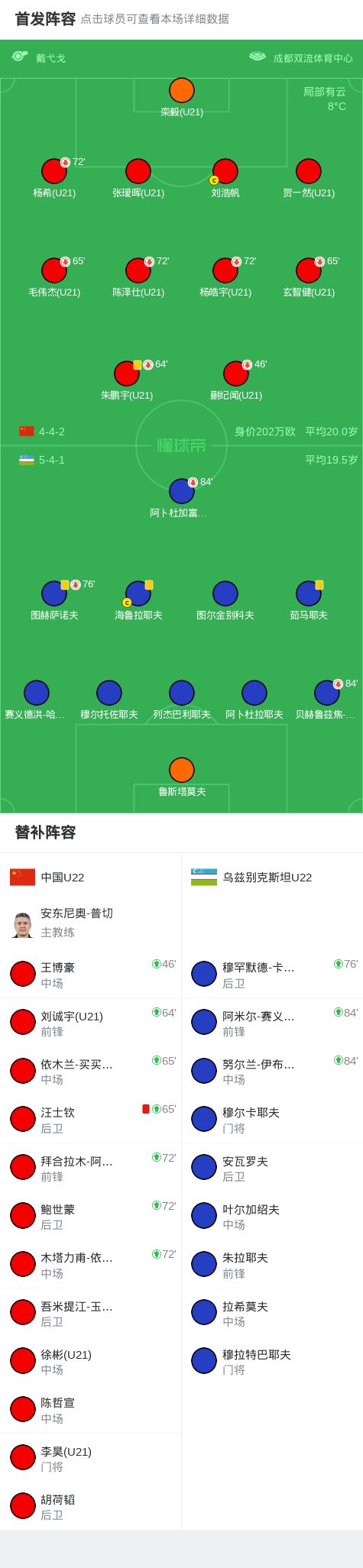 北京时间11月18日中国之队熊猫杯国际足球邀请赛 成都邀请赛 第3轮,中国U22对阵乌兹别克斯坦U22。最终比分中国U22 0-0 乌兹别克斯坦U22。