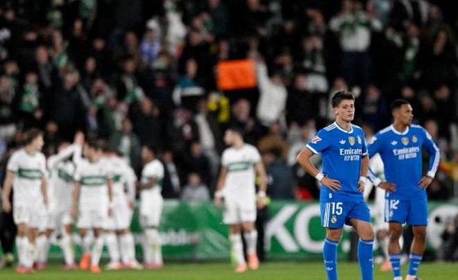 下半场易边再战。第53分钟,皇马丢球了。巴莱拉脚后跟送出妙传,费瓦斯前插单刀低射远角,皮球击中立柱弹入球门!埃尔切取得领先。4分钟后,皇马进行大规模换人调整,维尼修斯、巴尔韦德和卡马文加替补上场。第78分钟,皇马扳平比分。赫伊森门前抓住机会把球打进。6分钟后,皇马再次丢球。阿尔瓦罗远射破门。紧接着,贝林厄姆绝境爆发,完成绝平。最终,皇马2-2埃尔切。皇马以1分的优势重夺榜首位置。