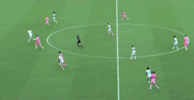 开场之后,双方在场面上势均力敌,控球率几乎五五开,但迈阿密国际率先取得了进球。