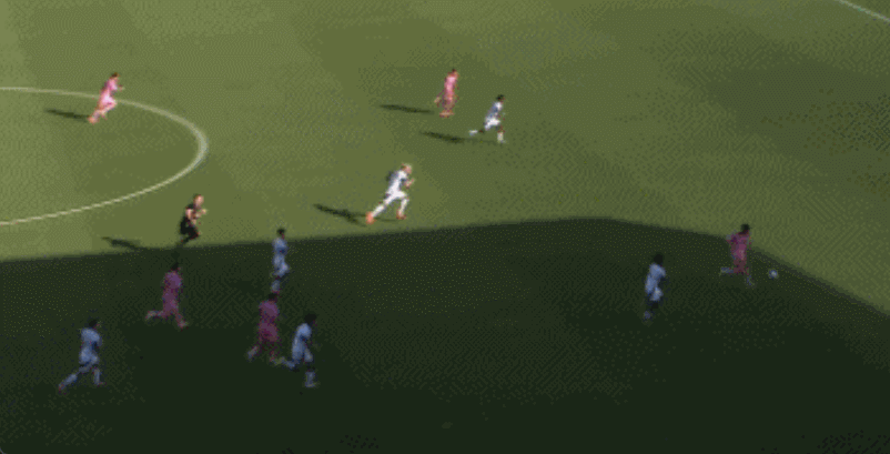 第71分钟,梅西前场断球后送出直塞助攻,德保罗禁区推射破门,帮助迈阿密国际2-1再度领先。