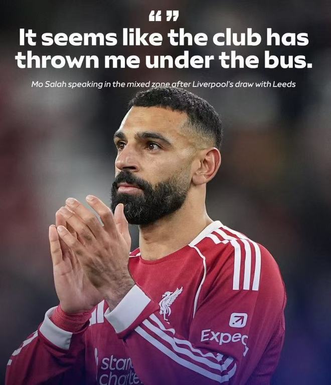 比赛结束后,在板凳席上枯坐90分钟的萨拉赫在混合区接受了采访,对自己的现状表达了严重不满。他表示,3-3战平是一个令人失望的结果,球队丢了很愚蠢的球,而自己则因为坐在替补席上没办法帮助队友。在萨拉赫看来,自己是被俱乐部“推下了车”,有人想让他承担所有的责任。“我之前多次说过,我和主教练关系很好,但突然之间我们之间毫无关系了,我不知道为什么,好像有人不想让我留在俱乐部。”