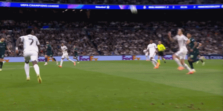 这个时候你就会发现,尼科独木难支,谢尔基也帮不上忙,所以贝林厄姆将球交给罗德里戈,第一球就这么到来了: