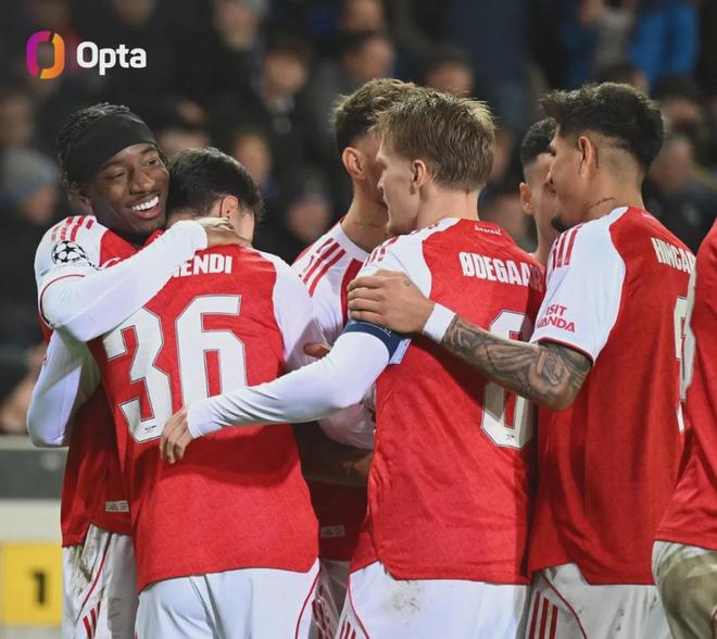 Opta统计,阿森纳成为了第4支欧冠单赛季前6场比赛全部取胜的英超球队。