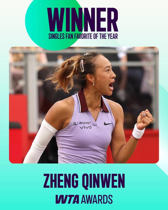 12月15日,WTA官方公布了2025年度最受球迷欢迎奖得主,中国网球一姐郑钦文成功当选,这是郑钦文连续第2年获得这一殊荣。