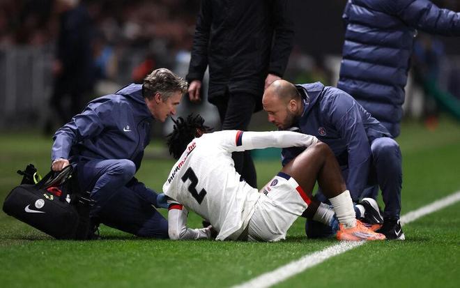 这次导致他遗憾离场的受伤发生在比赛第20分钟。当时这位巴黎青训小将正在右路持球,跟腱被对面球员踩踏。这位右后卫倒地后,过了许久才起身回到场上。在队医的处理后,他还是尝试继续比赛。