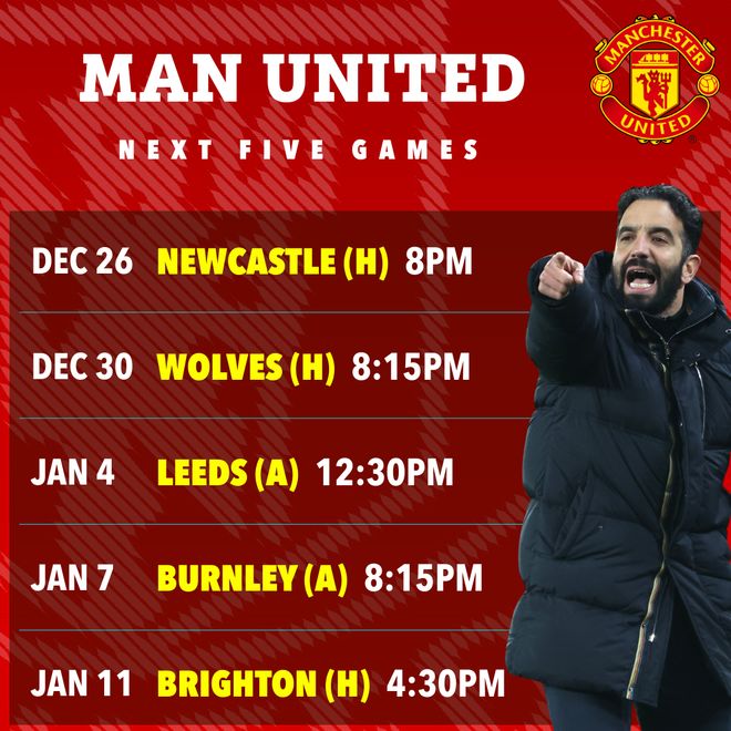 梅诺是小腿受伤,这意味着40岁的阿莫林在12月26日对阵纽卡斯尔的比赛中,将只有两名正宗的中场球员可供选择。卡塞米罗结束一场禁赛后将再次出战,另一个是在维拉公园替代停赛的「胖虎」、近三个月来首次先发的乌加特,但后者本赛季所有打主力的比赛,曼联全部输掉。