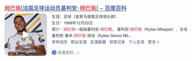 近日,百度百科上出现了新的姆巴佩词条。如果搜索“姆巴佩”,置顶的基利安-姆巴佩让人大跌眼镜,这是哪里的姆巴佩?