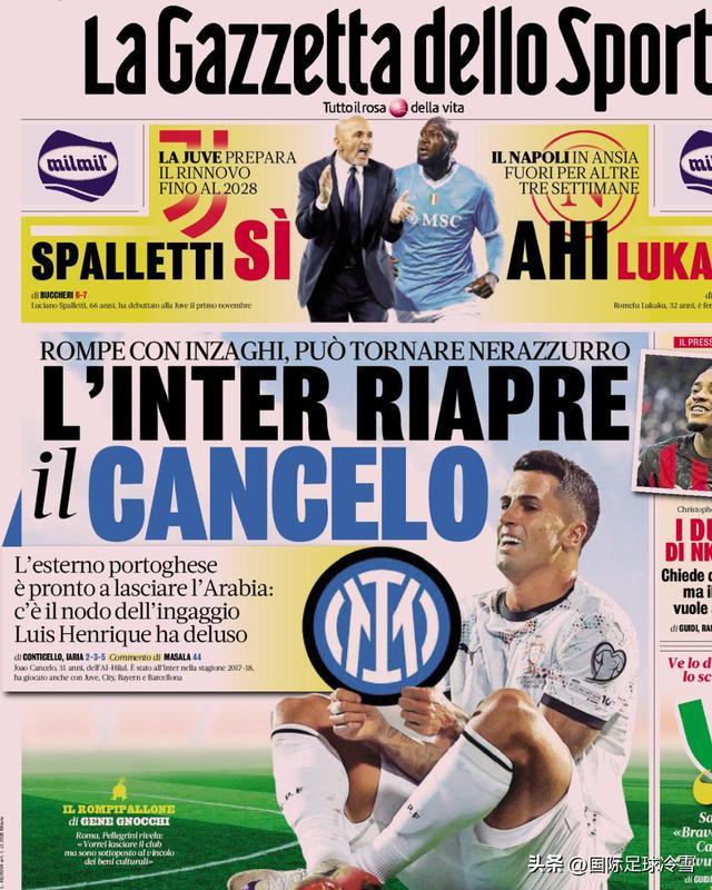 在过去一天,整个国米圈最闪亮、提及率最高的那个名字,当然就是:坎塞洛。